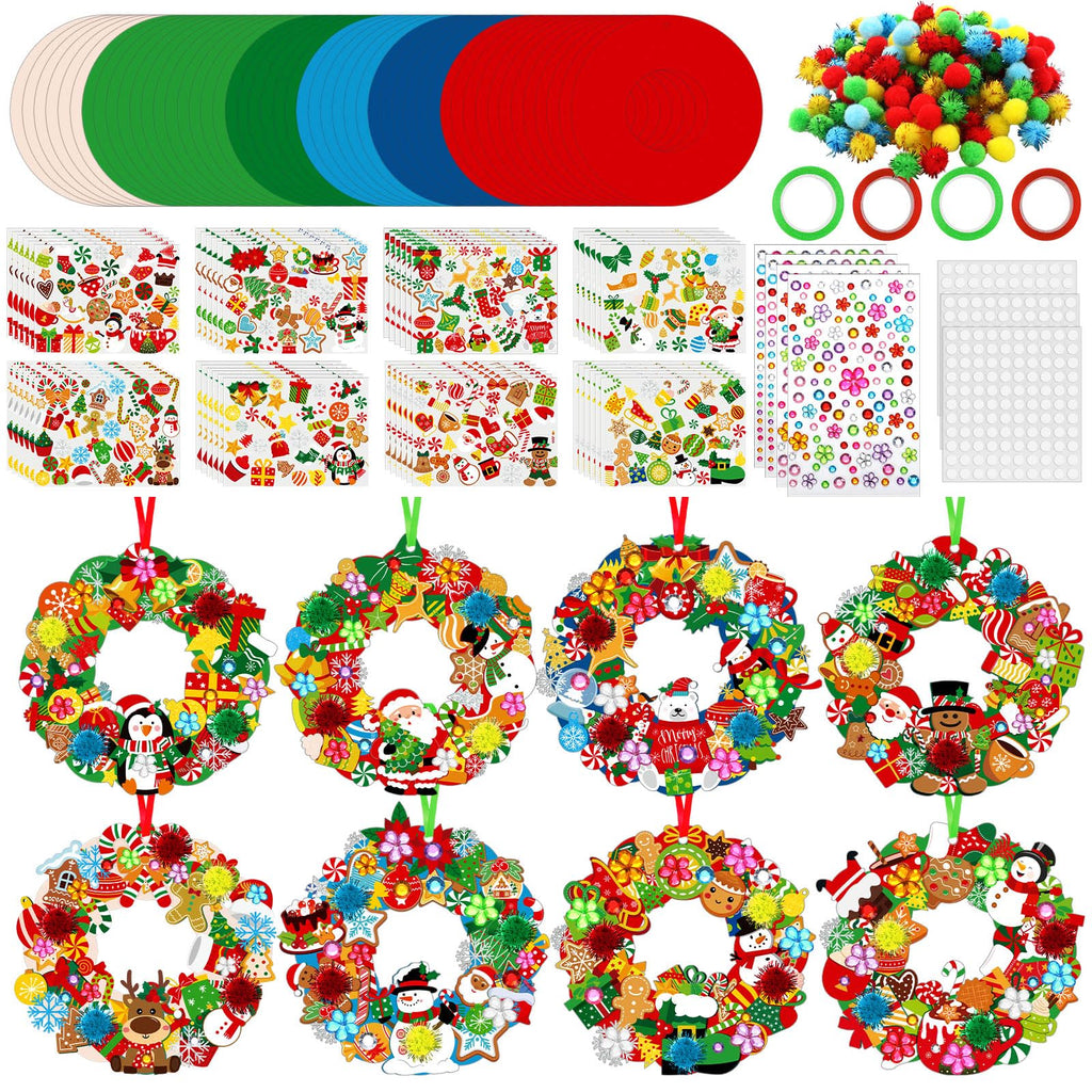Hollowfly 48 Sets Christmas Wreath Craft Kits For Diy Santa Claus Wreath Hanging Ornaments Make Your Own Paper Xmas Craft With S