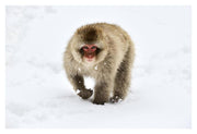 This artwork is a photographic print that captures the beauty of a Japanese Macaque in its natural habitat during winter.