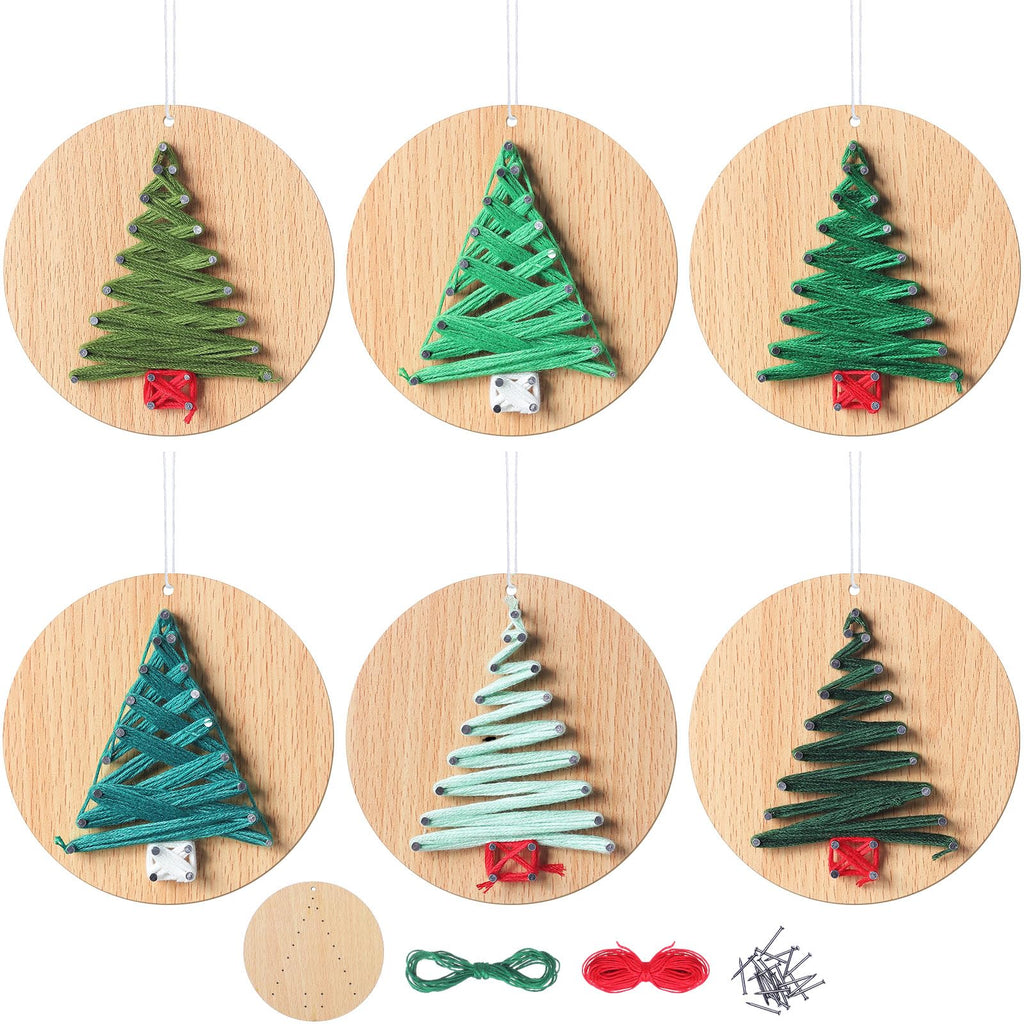 Jetec 6 Pcs Christmas Tree String Art Kit Diy Wood Xmas Tree Ornaments Crafts With Planks Nails Wire For Holiday Handmade Adults