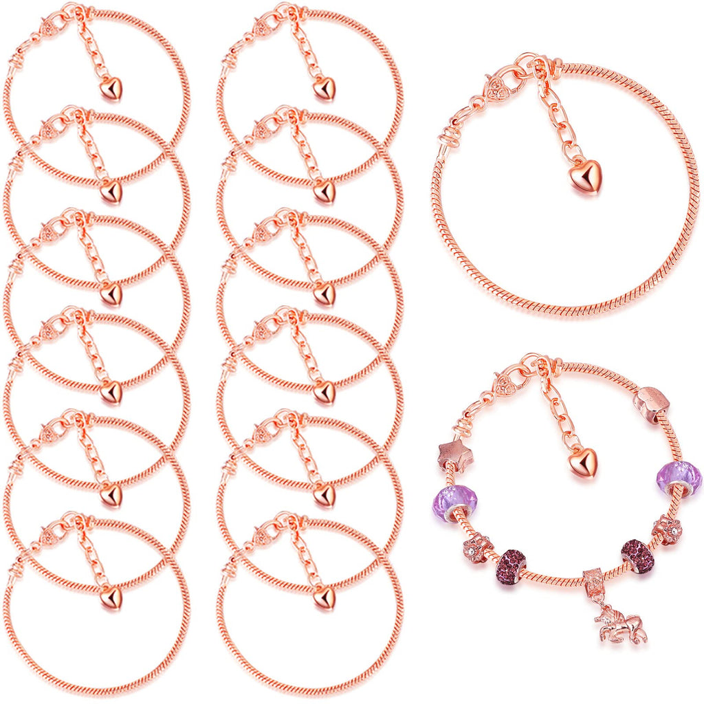 Features:Equipped with a plastic box: Our small charm bracelet comes in a plastic box, convenient for you to store, and also you can use your imagination and add some your own elements with markers on the box, then send to your wife, your mother, your girlfriend to express your love, appreciation, respect, care and blessings.Enough length: These bracelets are approx. 7.87 inches long and are also available with 2 inches extension clasp for you to adjust to ensure they fit most people, so you dont need to worry about their size.Specifications:Material: copper materialColor: as pictures shownSize: 7.87 inch with 2 inch chainQuantity: 12 piecesPackage includes:12 x Snake chain charm braceletsNotes:Manual measurement, please allow slight errors on size.The color may exist slight difference due to different screen displays.
