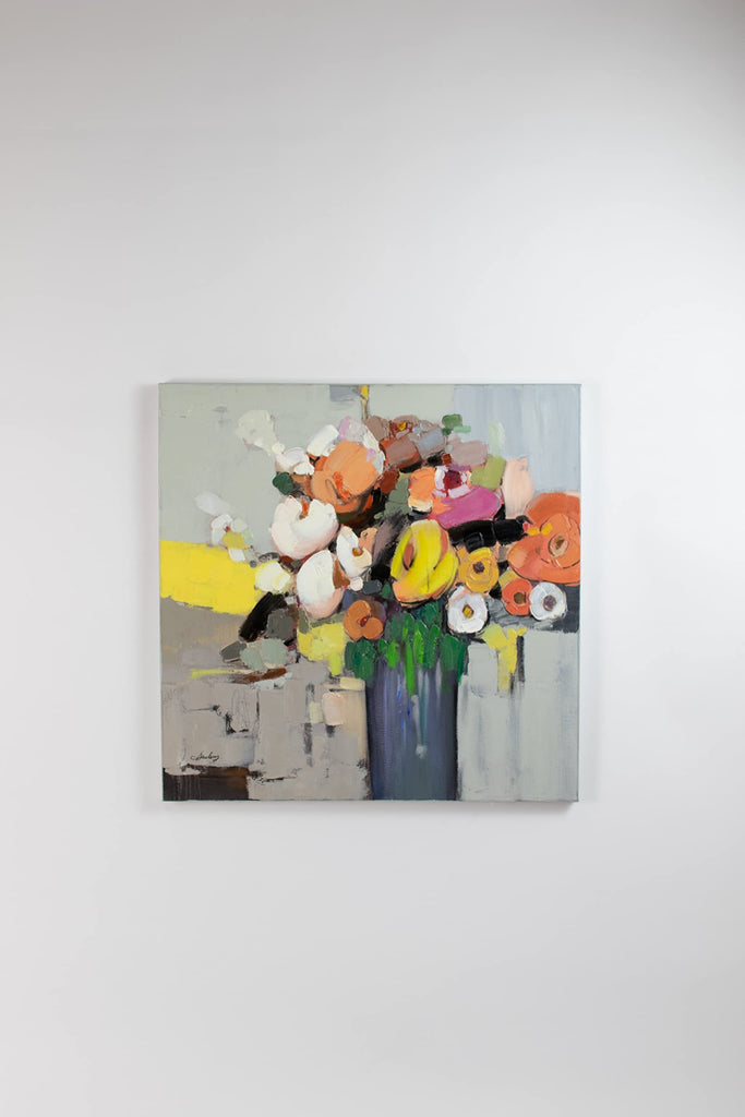 The Kalalou CAR1550 Flower painting measures 36.00 inches in length, 36.00 inches in height, and 1.50 inches in width.