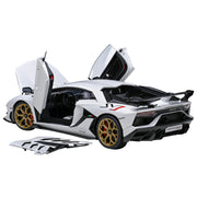 Brand New 1/18 Scale Car Model Of Lamborghini Aventador Svj Bianco Asopo Pearl White With Gold Wheels Model Car By Autoart. Carpeted Interior. Real Rubber Tires. True-To-Scale Detail. Has Steerable Wheels. Officially Licensed Product. This Model Is Made Of Composite. Manufacturer'S Original Unopened Packaging. Detailed Exterior, Interior, Engine Compartment. Opening Frunk, Doors And Engine Compartment. Dimensions Approximately L-10.75, W-5, H-2.25 Inches.