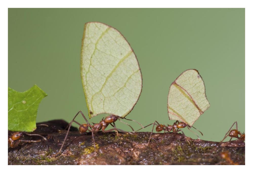 The photograph depicts leafcutter ants carrying leaves, showcasing the beauty of nature and wildlife.