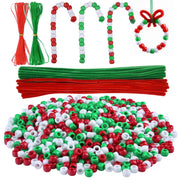 Livder Christmas Beaded Ornament Kit, Include 1000 Pieces Red Green White Plastic Beads, 60 Pieces Chenille Stems, 64 Feet Ribbo