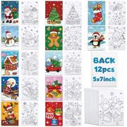Louise Maelys Pre Drawn Canvas To Paint For Kids - 12 Pack Christmas Theme Pre-Stretched Canvas Panels (5X7 Inch) Easy Paint Art