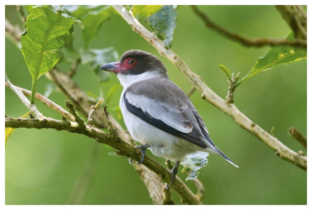 The theme centers around wildlife, specifically showcasing the beauty of the Masked Tityra in its natural habitat.