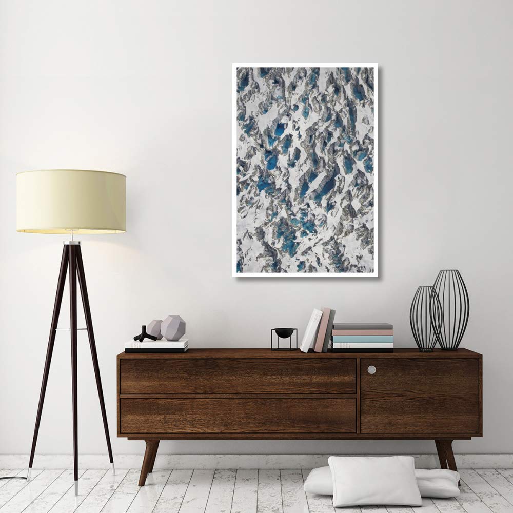 The Global Gallery Meltwater Lakes is a paper art photograph depicting scenic views of Hubbard Glacier in Wrangell-St. Elias National Park, Alaska.