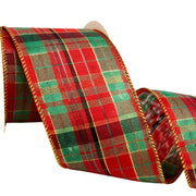 Meseey Christmas Red Green Gold Buffalo Plaid Ribbon 4 Inch X 10 Yards Tartan Check Wired Ribbon For Topper Bow,Wreath,Gift Wrap
