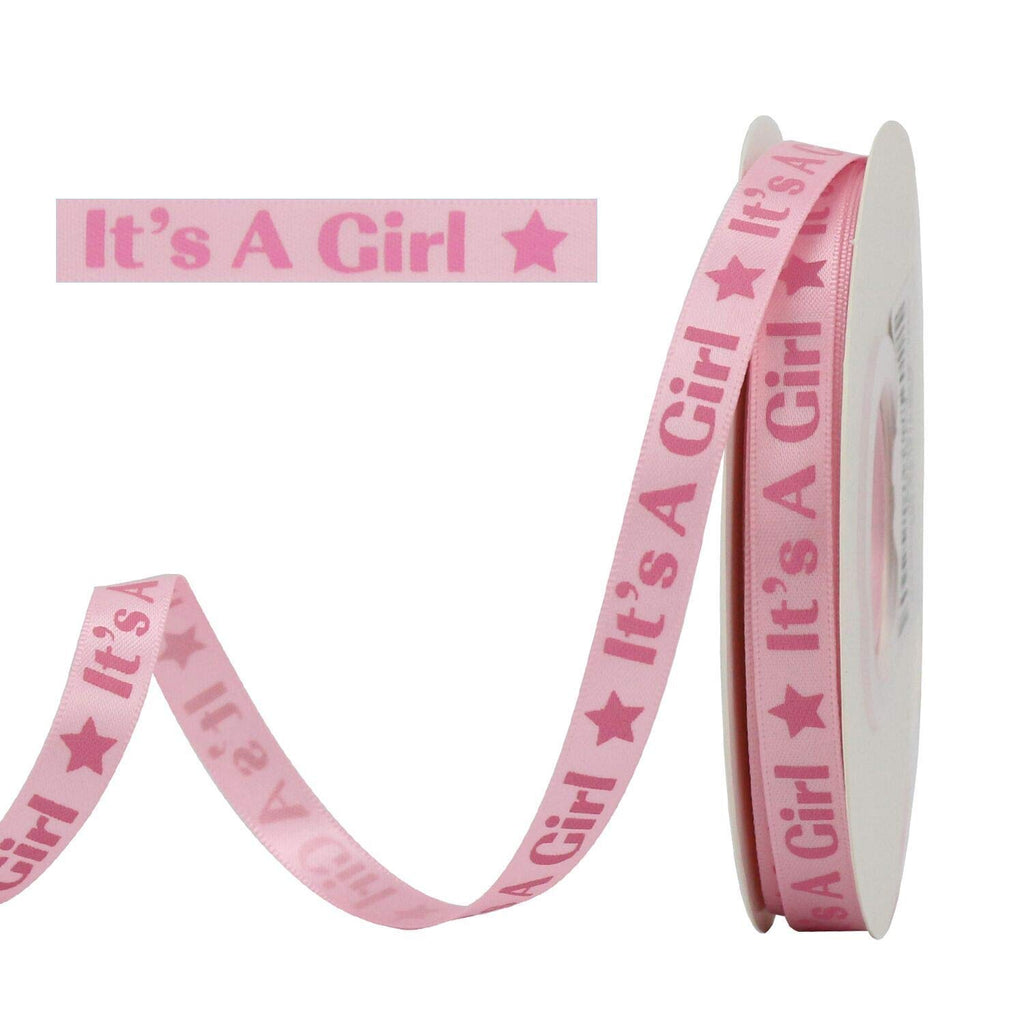 Midi Its A Girl Baby Pink Celebration Double Face Satin Craft Ribbon, 3/8 Inch X 25 Yard, Girls Baby Shower, Birthday, Christe
