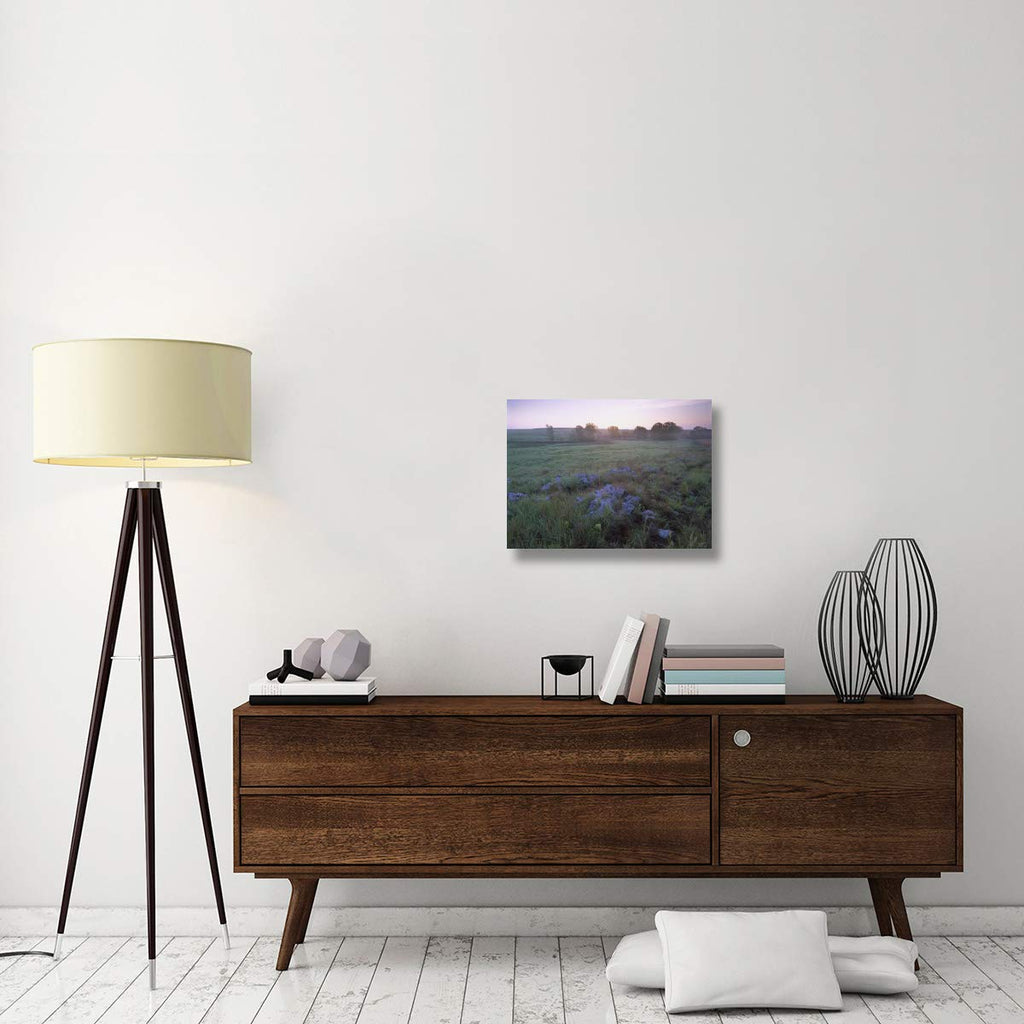 Yes, the Global Gallery Misty Morning Over Prairie canvas art is suitable for display in various rooms, including living rooms, bedrooms, and offices.