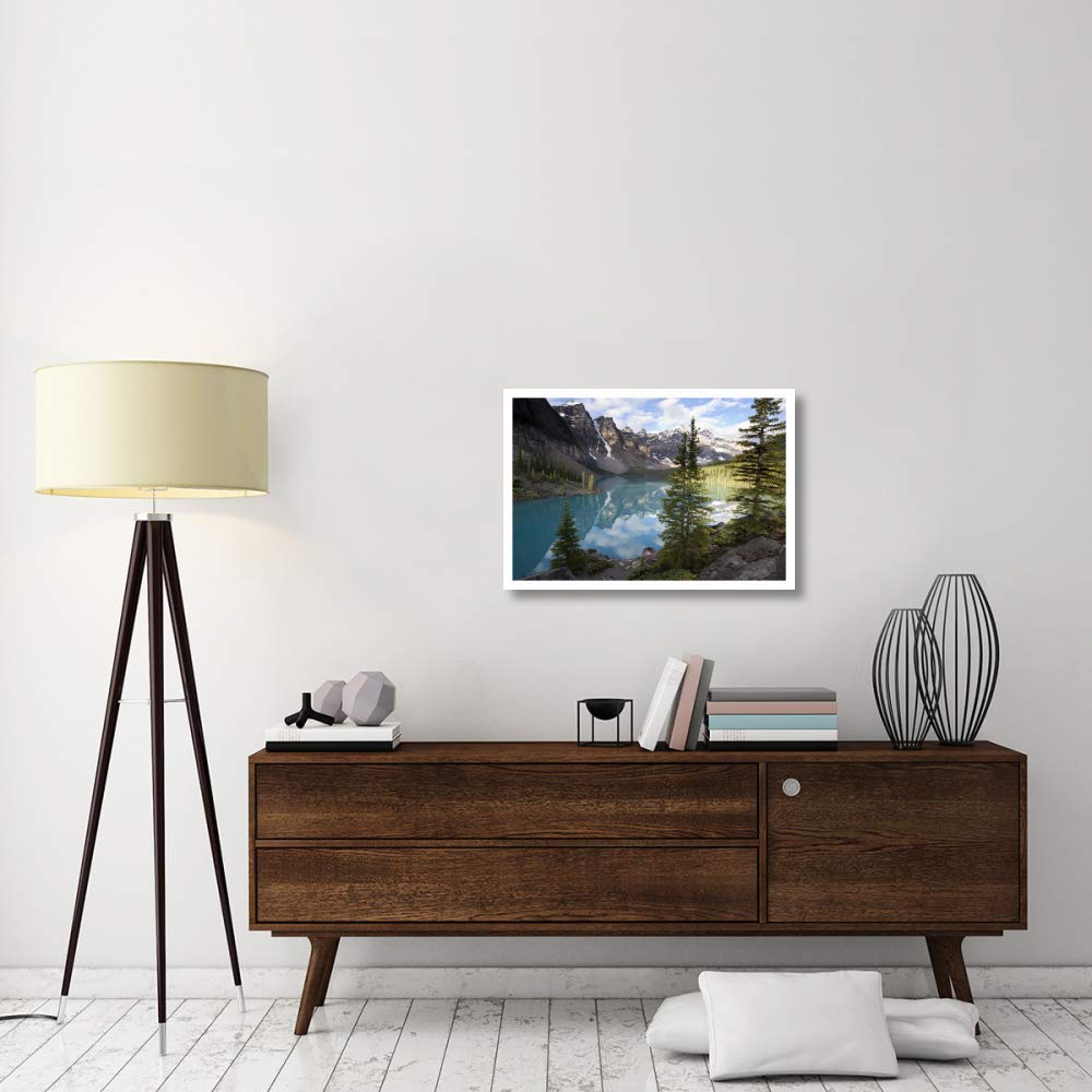 The print features Moraine Lake in Banff National Park, Alberta, Canada, showcasing the stunning landscape of the Valley of the Ten Peaks.