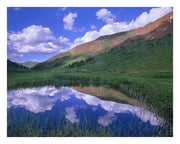 It is a paper art photograph featuring a scenic view of Mount Baldy and Elk Mountains in Colorado.
