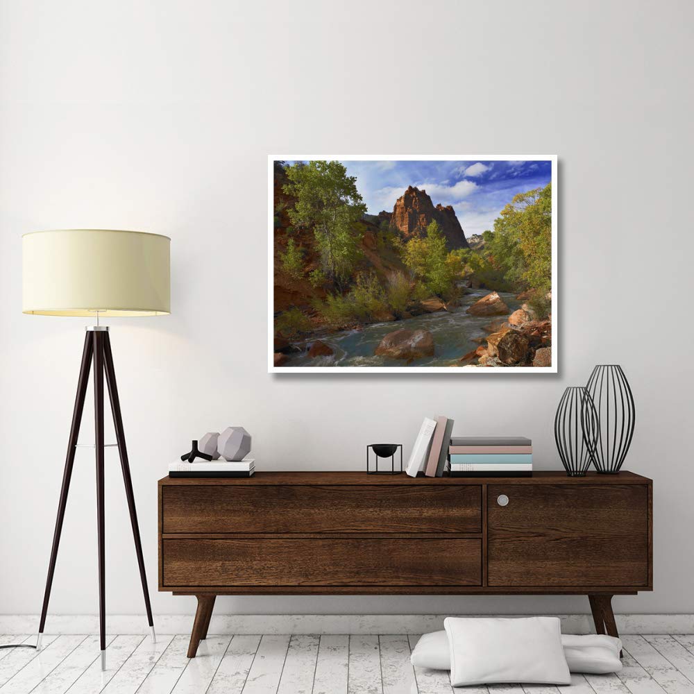 Mt Spry At 5,823 Foot Elevation With The Virgin River Surrounded By Cottonwood Trees, Zion National Park, Utah-Paper Art-50,,X38