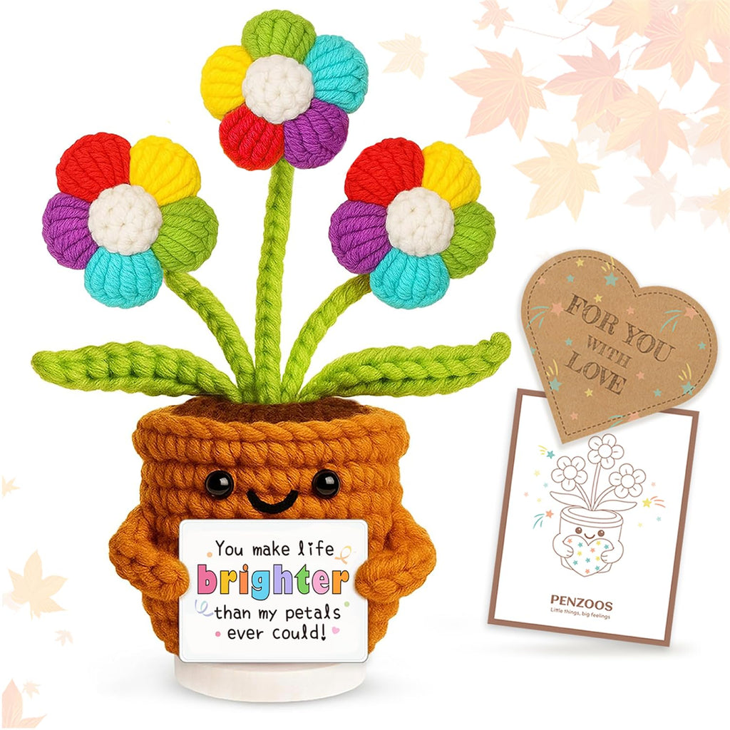 PENZOOS Emotional Vessels - You Make Life Brighter ?? Bring warmth, care, and joy to someones day with this handmade Rainbow Crochet Flower Gift. Each piece is carefully crocheted loop by loop, designed to be a unique Thinking of You Gift for Women - perfect for get well soon, encouragement, or thank you moments. Inside every flower is a little surprise - a hidden handwritten-style note that says For You, With Love , along with a heartfelt Thank You message from the brand. This thoughtful detail turns a simple flower into a meaningful gift that speaks without words. Crafted for emotional support and mindful comfort, the PENZOOS Emotional Vessels Collection celebrates kindness, positivity, and gentle connection. Its a lasting symbol of hope and love - a small bloom that never fades. ? Perfect for: Thinking of You Gift for Women Get Well Soon Gift for Friend or Mom Encouragement Gift for Women Thank You Gift for Teacher, Coworker, or Nurse Emotional Support Gift for Long Distance Friends ?? Whether its a birthday gift, holiday surprise, or a simple gesture of love, this crochet flower carries your message of comfort and care. Because sometimes, the best hugs travel through handmade gifts.