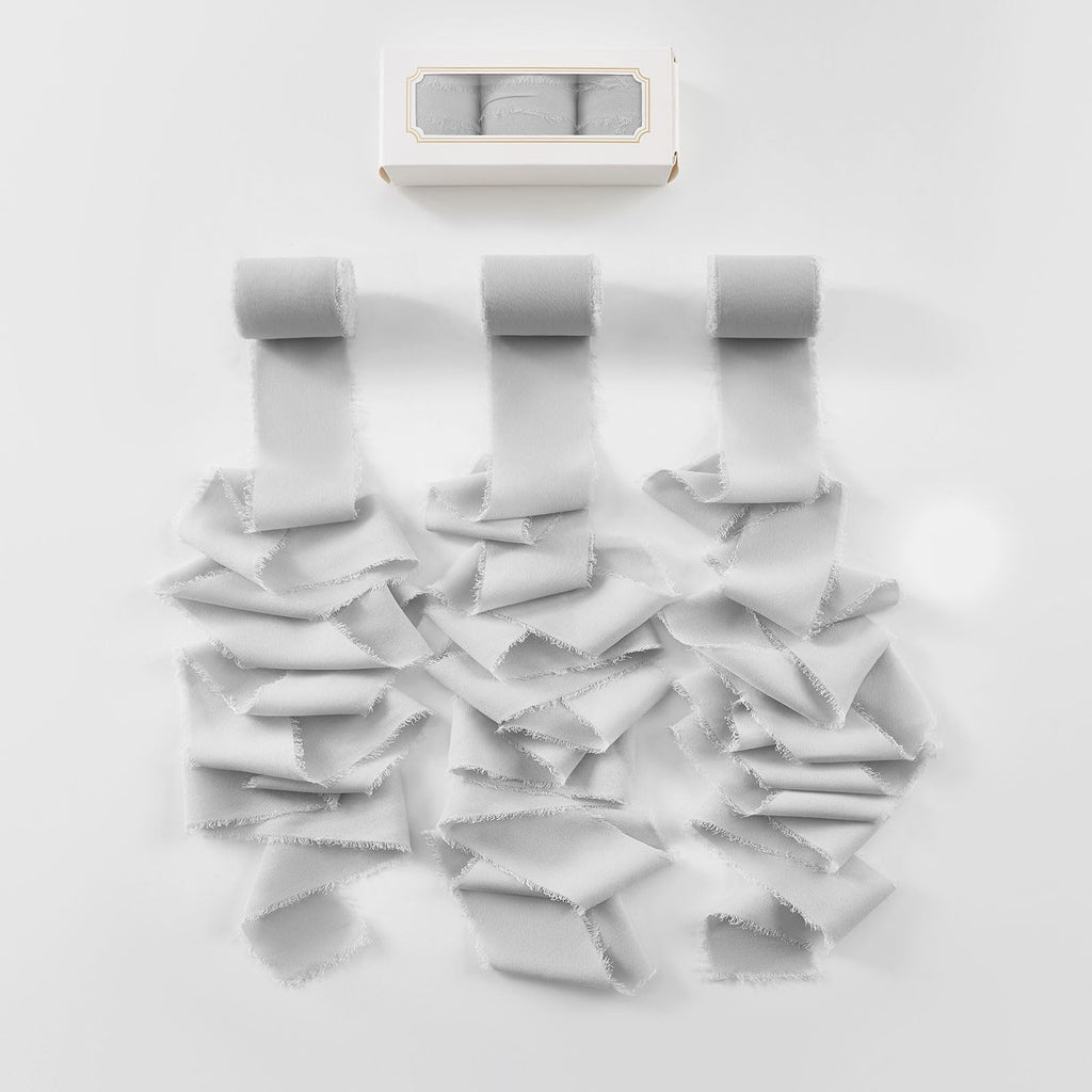 Pretty Jolly Grey Chiffon Ribbon For Gift Wrapping 3 Rolls 2 Inch X 7Yd Silk Ribbons Handmade Fringe Fabric Ribbon For Flower Bo