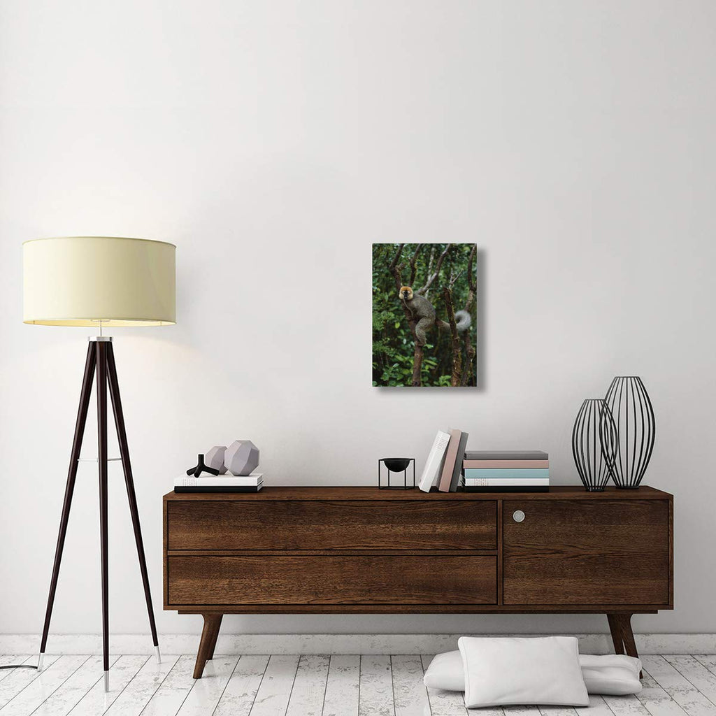 This product is a canvas art photograph featuring a Red-Fronted Brown Lemur from Ranomafana National Park in Madagascar.