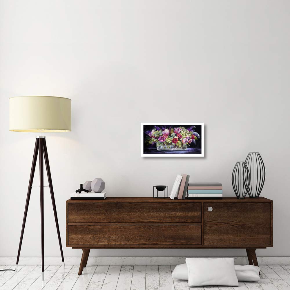 The Global Gallery Roses and Lilacs Paper Art measures 26 inches by 14 inches.