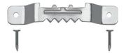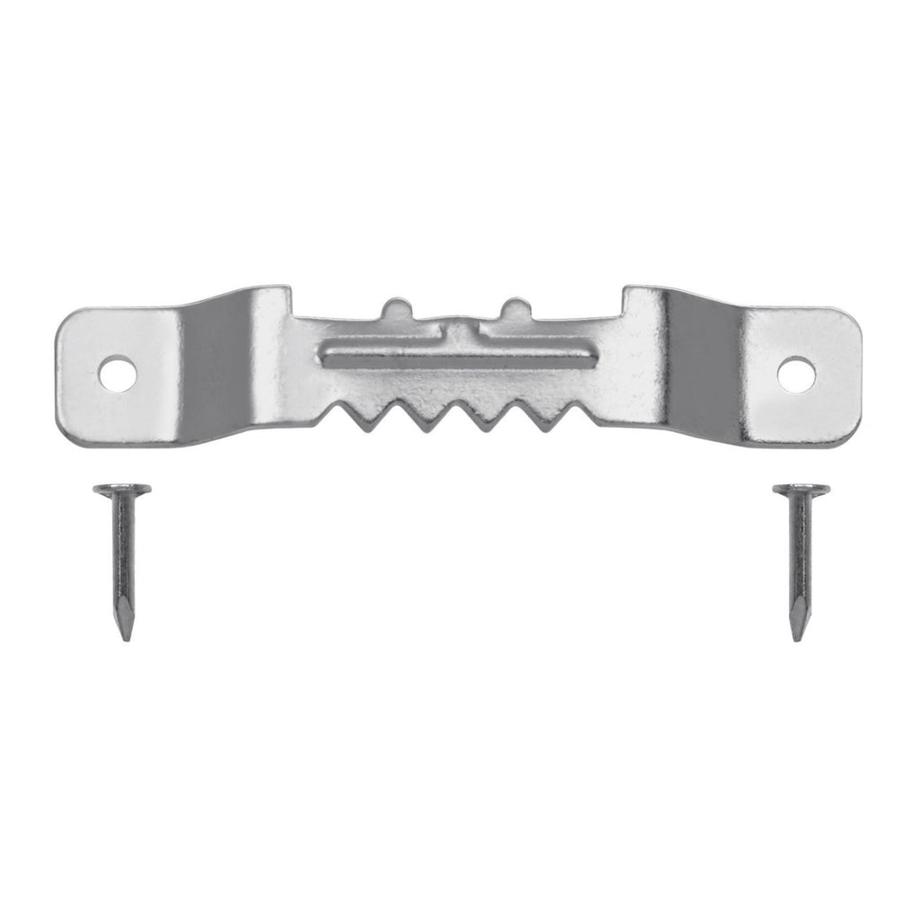 The package includes three small, zinc-plated saw tooth picture hangers along with nails for installation.