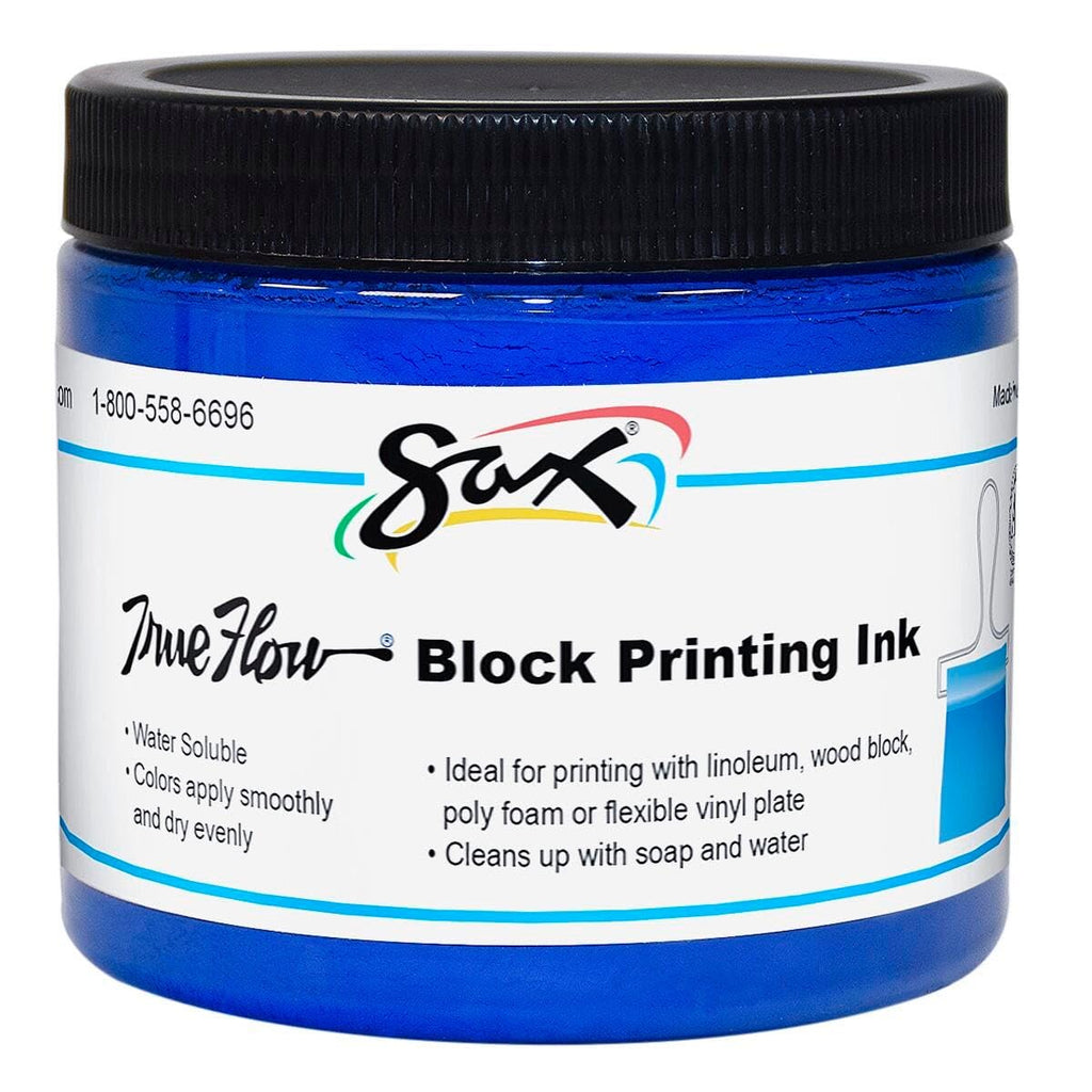 The Sax True Flow Water Soluble Block Printing Ink comes in a 1 pint jar, which is easy to pour or dip into for immediate use.