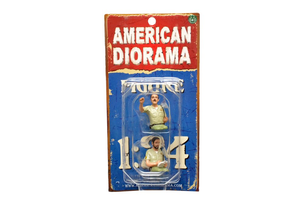 The American Diorama Seated Sheriff Officers figures are designed for 1:18 scale models.