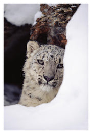Snow Leopard Adult, Looking Out From Behind A Snowbank-Paper Art-14,,X20,,
