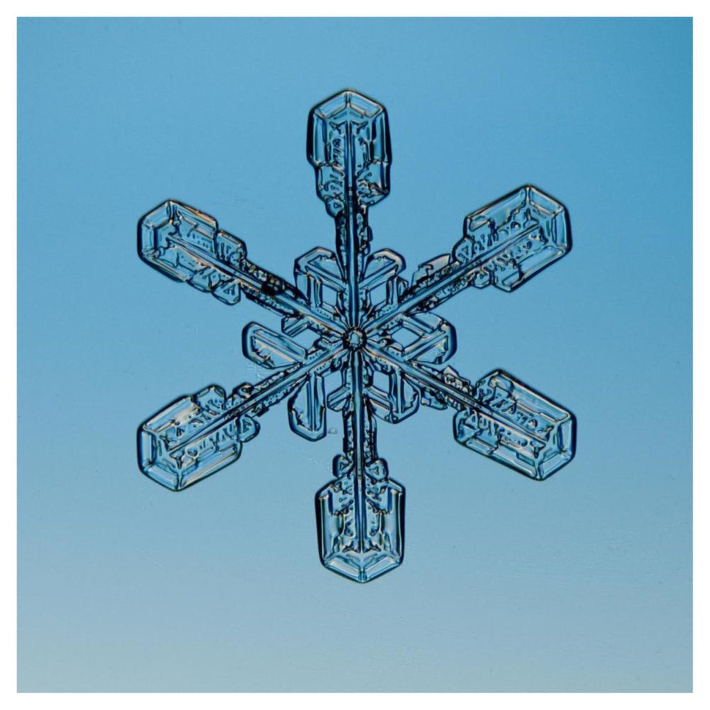 Yes, it is a paper art piece that features a printed image of a snowflake seen through a microscope.