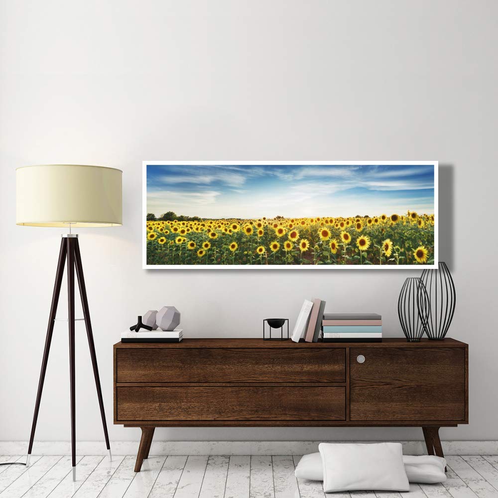 The Global Gallery Sunflower Field artwork measures 74 inches in width and 26 inches in height.