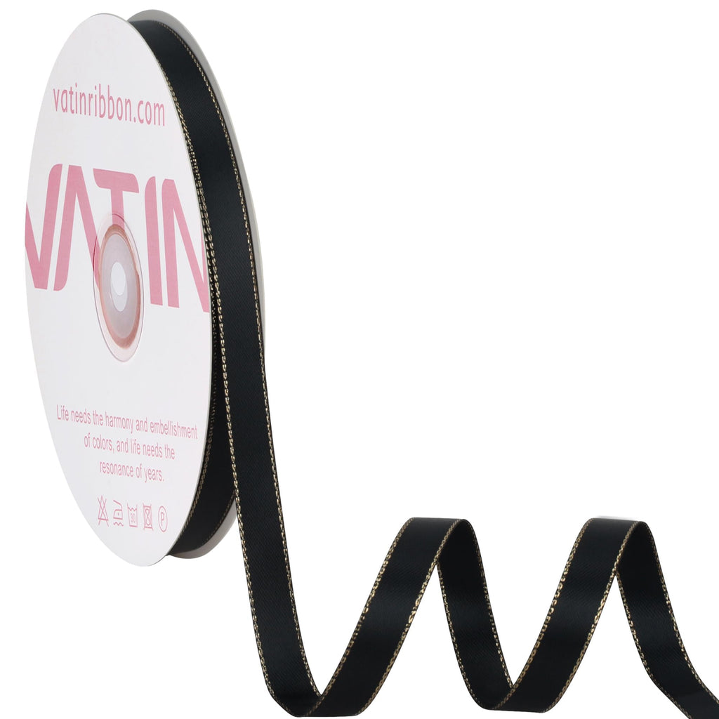 VATIN Double Faced Satin Ribbon 3/8 inch Black with Gold Edge Continuous 50 Yards for Decoration, Craft, Gift Wrappping Wedding Card Decoration