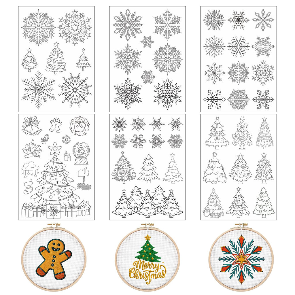 Water Soluble Embroidery Patterns Stabilizers - Rngmsi 6 Sheets Christmas Stick And Stitch Embroidery Paper Wash Away 57 Pcs Sno