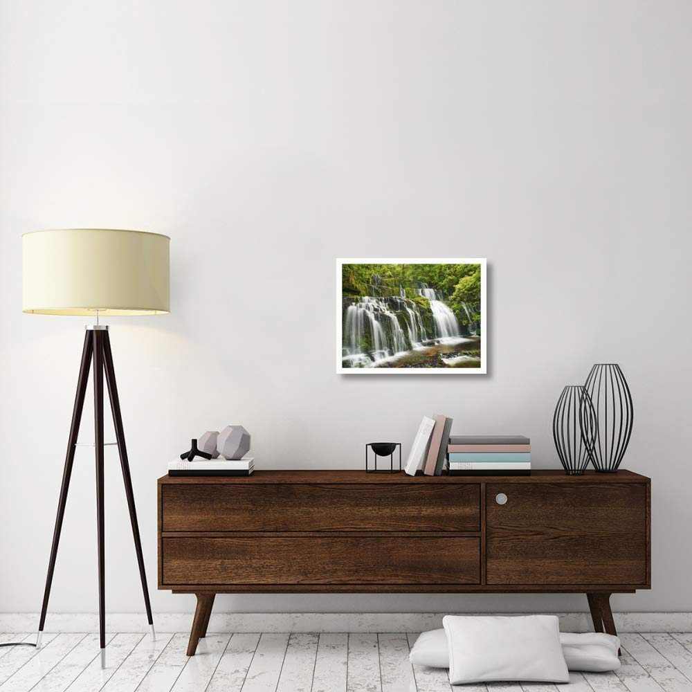 This artwork is a photographic print featuring the Purakaunui Falls in New Zealand.
