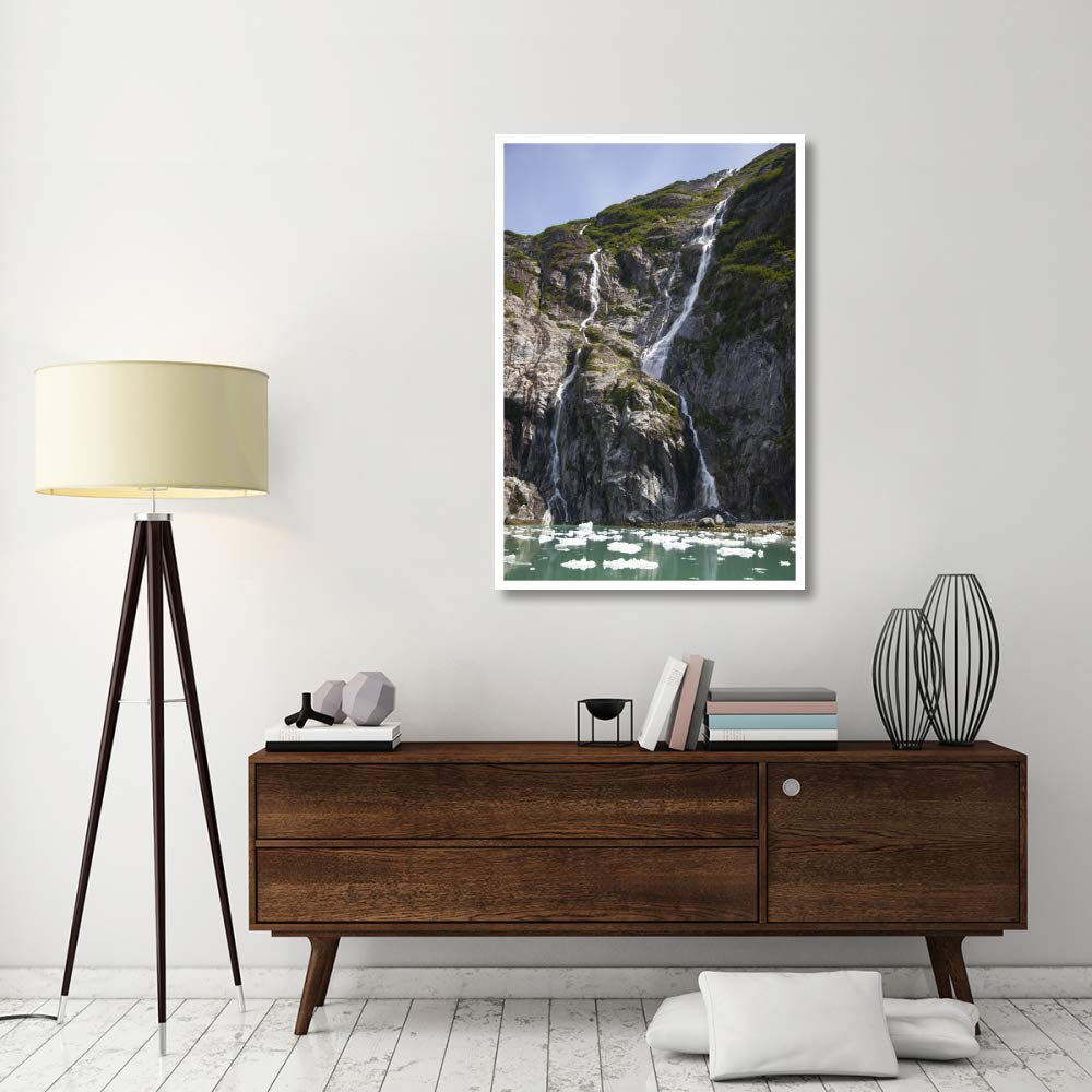 The Global Gallery Waterfalls artwork measures 34 inches by 50 inches.
