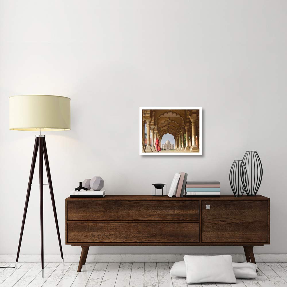 Woman In Traditional Sari Walking Towards Taj Mahal-Paper Art-26,,X20,,