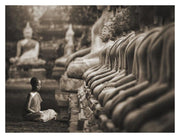 The artwork depicts a young Buddhist monk in a praying position, captured in Thailand, conveying a sense of peace and spirituality.