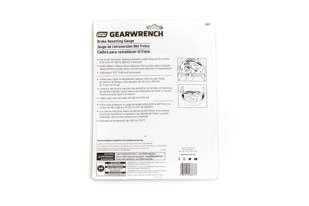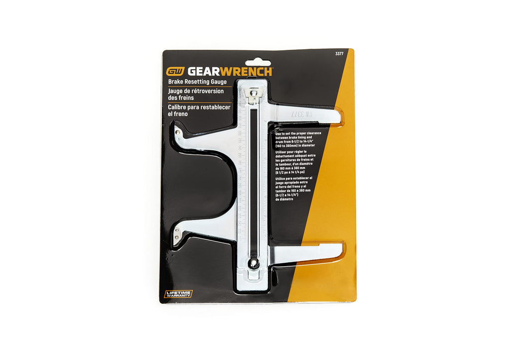 The GEARWRENCH Brake Resetting Gauge is designed to set the proper clearance between brake lining and drum prior to assembly, ensuring optimal brake performance.