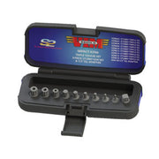 The set includes various sizes of stubby XZN bits specifically designed for use with 3/8" square drive tools.