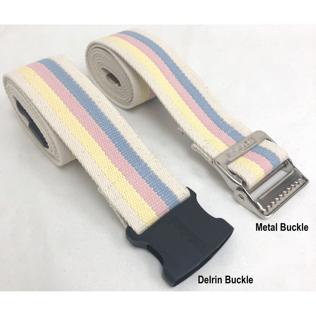 The Delrin buckle provides a quick-release mechanism, allowing caregivers to easily secure and release the belt during transfers and ambulation.