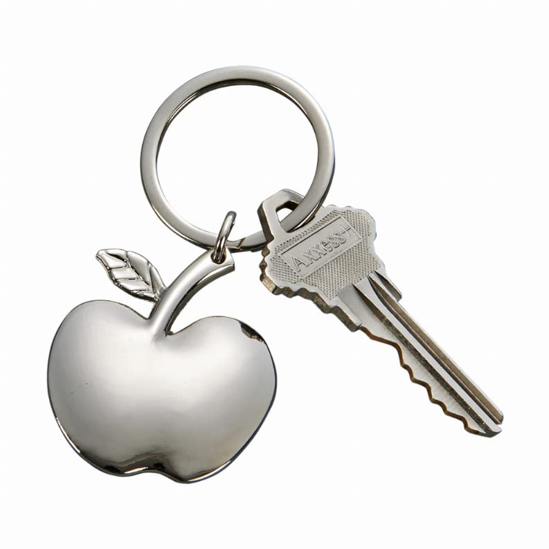 This Apple Shaped Key Chain Is A Great Gift For That Special Teacher The Apple Measures 3 (Including Ring) X 15 And The Ring Is About 1 Diameter The Apple Can Be Engraved With A Special Message Or Monogram The Bright Silver Finish Is Nickel Plated And Will Not Tarnish Gift Boxed