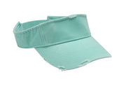 The visor has a three-panel design with heavy distressing on both the visor and band, giving it a stylish, worn look.