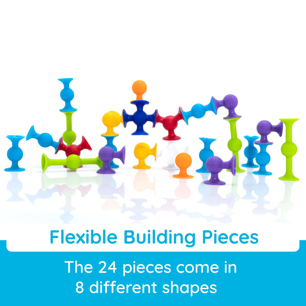 Suction construction squigz to build, bounce, and stick to almost any smooth, flat surface super flexible squigz can be assembled to create an impressive array of vehicles, robots, jewelry, and more. Just as fun to pop apart theyre fun little suckers.