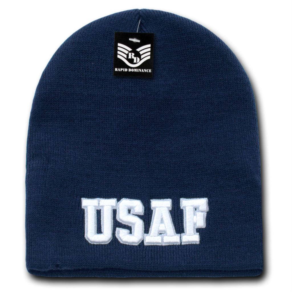 S90-Air_Txt Military Work Beanies, Airforcetxt, Navy, U.S. Usaf Text - Navy Classic Military Work Knit Caps With High Definition Embroidery And A Comfortable Stretch-To-Fit Design. Perfect For Training In Cold Weather Training Or Daily Use. Available In Army, Navy, Marines, And Air Force.