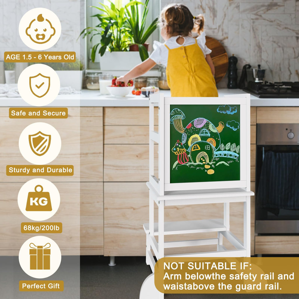 Our kids step stool has a weight limit of 200 lbs ,The step stool safely brings your child to counter height and allows them to explore their curiosity.