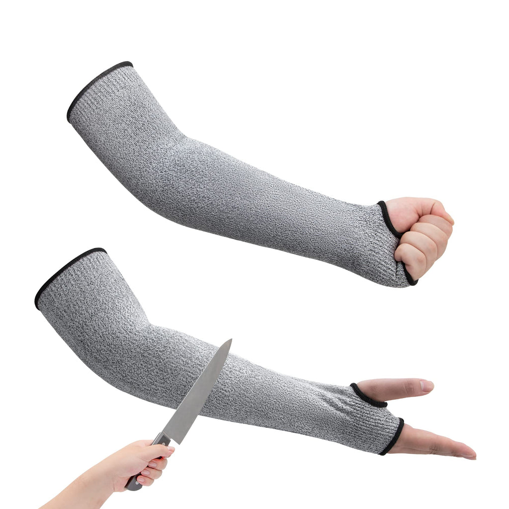 ARCLIBER 2 Pairs Cut Resistant Sleeves Level 5 Protective Arm Sleeves for Men & Women with Thumb Hole 18 inch Arm Guards for Thin Skin Gardening Cutting Pet Grooming