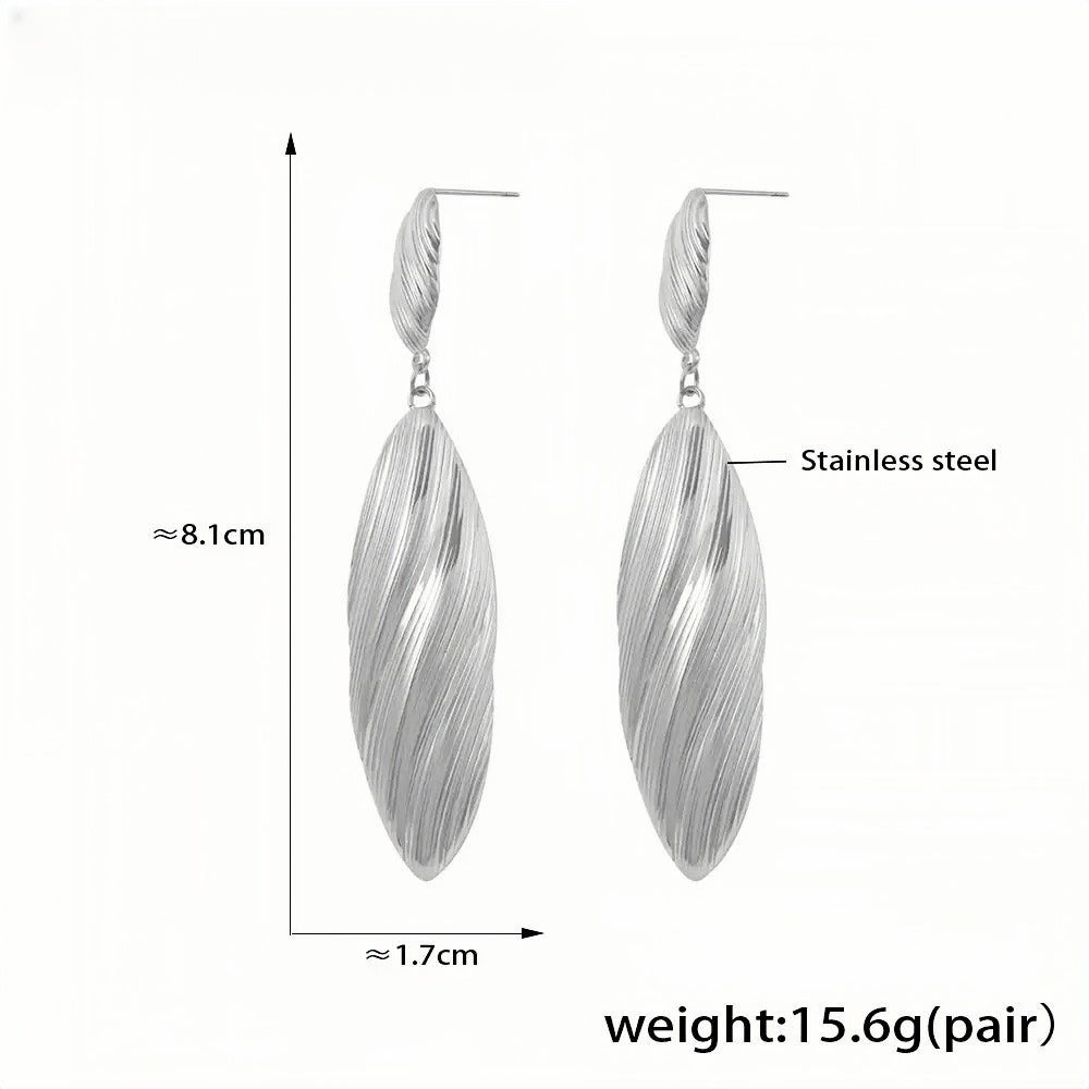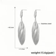 Add a touch of elegance to your look with these stunning Silver-tone dangle earrings. Designed with a graceful leaf-like silhouette and a sleek, textured finish, these earrings offer a blend of modern sophistication and timeless charm. Crafted from high-quality stainless steel, theyre not only beautiful but also durable and hypoallergenicperfect for everyday wear or special occasions.