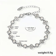 Add a touch of timeless elegance to your jewelry collection with this stunning stainless steel bracelet, featuring brilliant zircon stones arranged in delicate floral clusters. The bracelet combines durability with beauty, perfect for daily wear or special occasions. With an adjustable length of 6.2'' to 8.1'', it offers a perfect fit for most wrist sizes. Lightweight yet dazzling, this piece is a must-have accessory that blends classic charm with modern style.