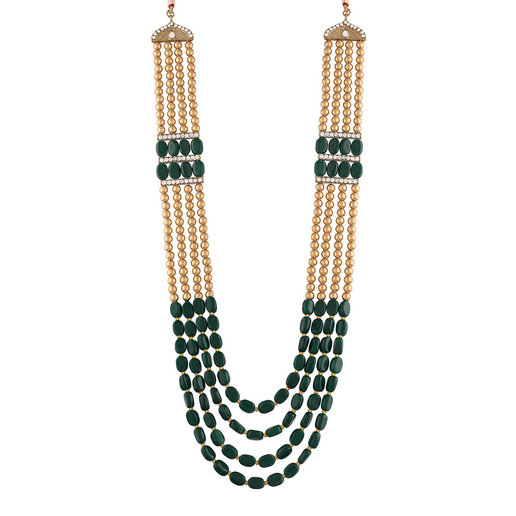 This festive wedding season I Jewels offers huge collection of groom mala/necklace in unique look. Truly very pretty and sure to give royal look on wedding. Add elegance and beautify your personality manifold by wearing this Necklace. Alloy based layered kanthimala in enhanced stone beads sherwani mala for men.