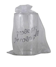 This glass is designed for a groom and comes inside an organza bag decorated with a Hebrew phrase about the city of Jerusalem in silver colored cursive Hebrew letters.