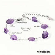 Embrace the natural beauty of gemstones with this elegant and lightweight amethyst bracelet. Designed with genuine amethyst stones and linked with a sleek stainless steel chain, this bracelet is a perfect blend of earthy charm and modern minimalism. Whether worn alone or layered with other pieces, it adds a subtle pop of color and calm energy to any look.