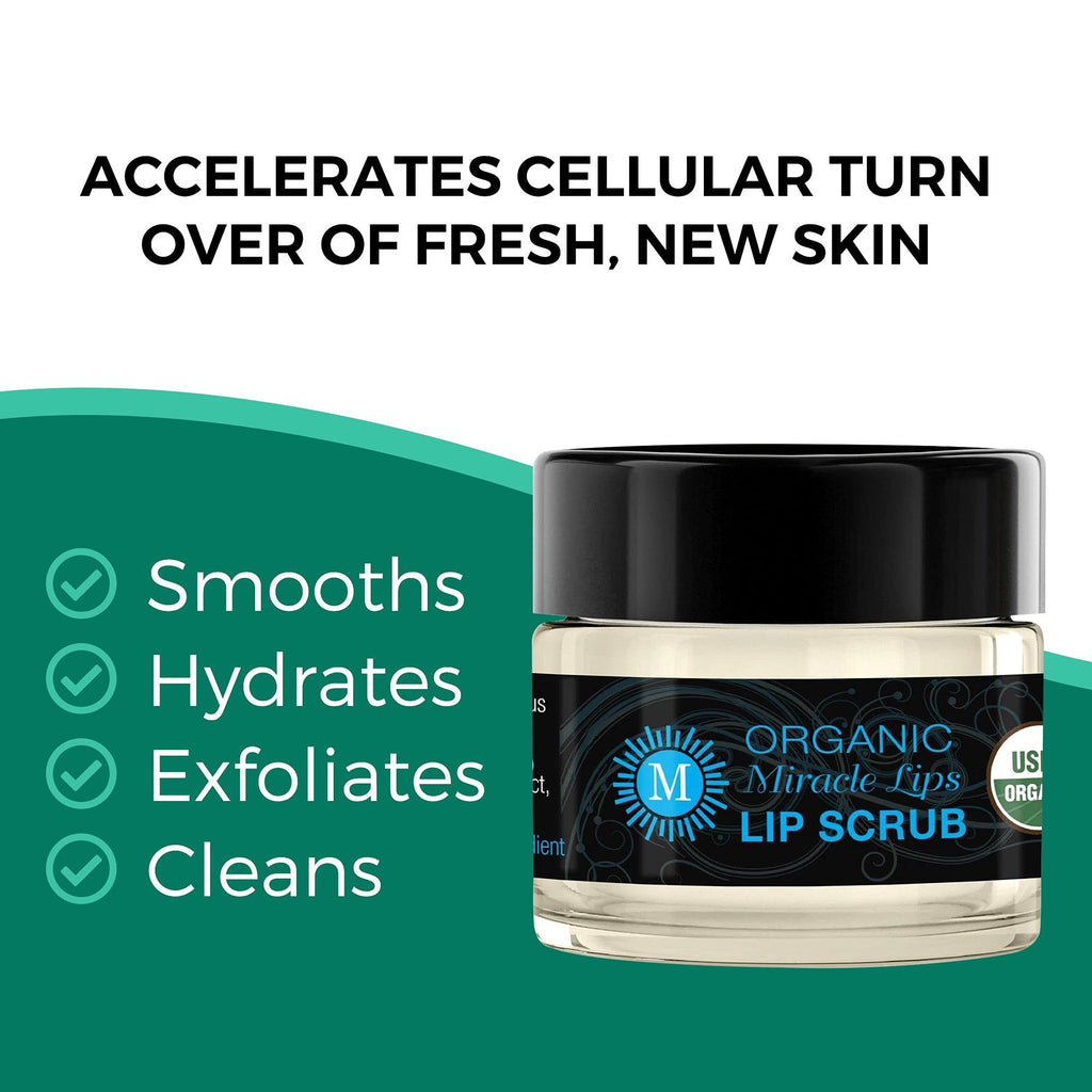Miracle Lips Organic 2 in 1 Lip Scrub and Moisture Balm is a product designed to exfoliate and moisturize your lips in one step. It combines a tangy berry sugar scrub that removes dead skin with a creamy lip balm that provides hydration, all while using organic ingredients.