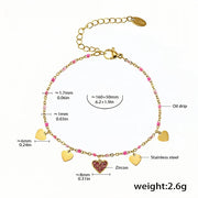 Show off your sweet side with this delicate pink zircon heart bracelet. Crafted from durable stainless steel with a lustrous gold finish, this piece features a central heart-shaped charm encrusted with sparkling pink zircon stones. The bracelet is adorned with pink and gold-toned oil drip beads and golden heart charms, making it the perfect accessory for any feminine and romantic look.