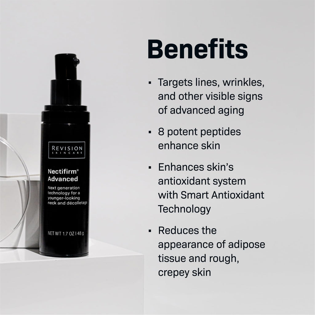 Product DescriptionAward-winning and age defying, our firming neck cream combats the visible signs of moderate to advanced aging on the neck and d colletage with eight distinctive, anti wrinkle peptides, leaving skin brighter and firmer-looking.Brand StoryFor more than 30 years, Revision Skincare has provided dermatologists, plastic surgeons and estheticians with clinically-proven, highly advanced offerings for skin health and longevity. Made in the U.S.A.
